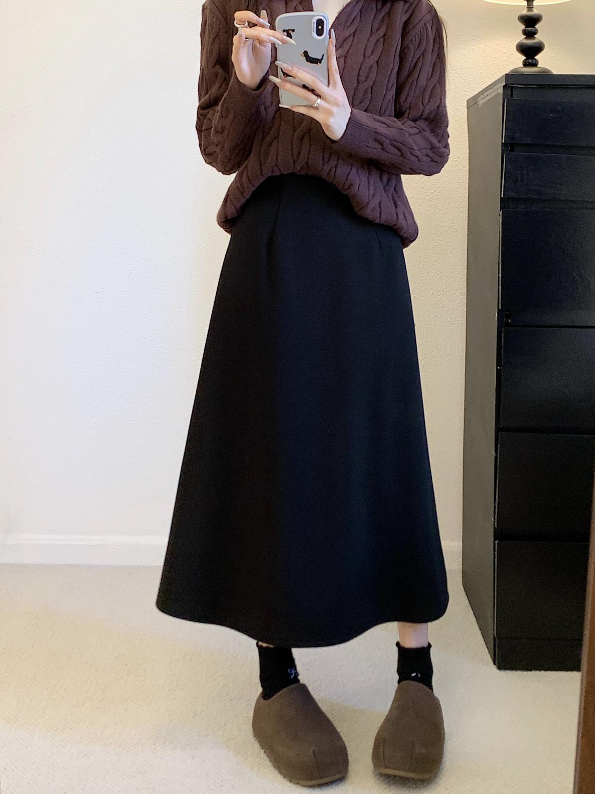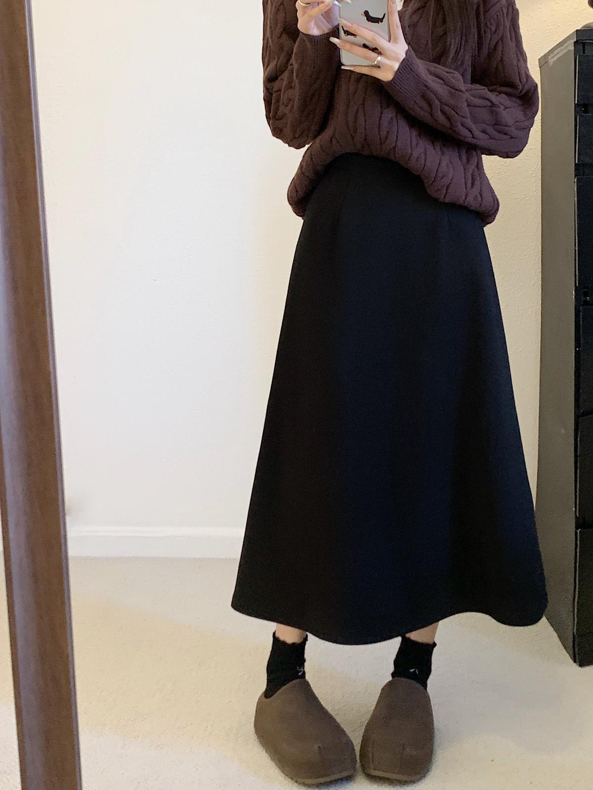 겨울 블랙 드롭 레귤러 미디 스커트 컬러 기모 미디 스커트